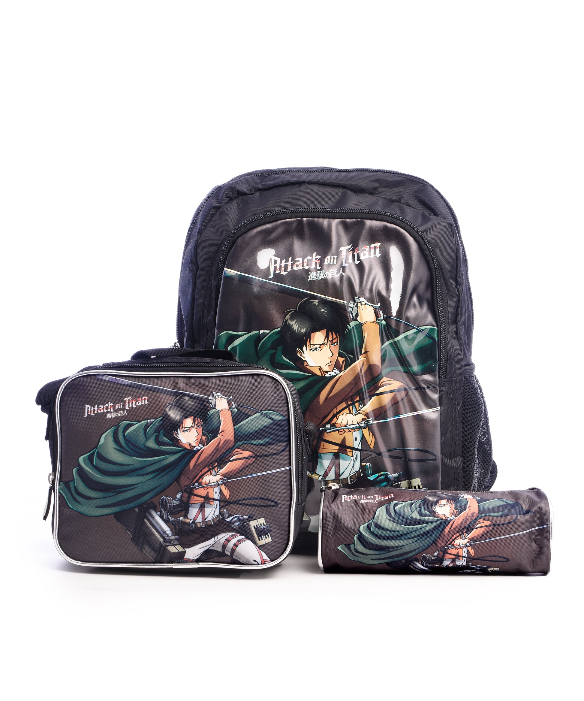 Gear up for colossal adventures with the 16" Attack on Titan kids' backpack set! This collection includes a lunch bag and pencil case, all adorned with iconic Attack on Titan imagery. Ideal for school or thrilling missions, this set blends style with functionality, ensuring young fans carry their essentials while embracing the spirit of the Titans