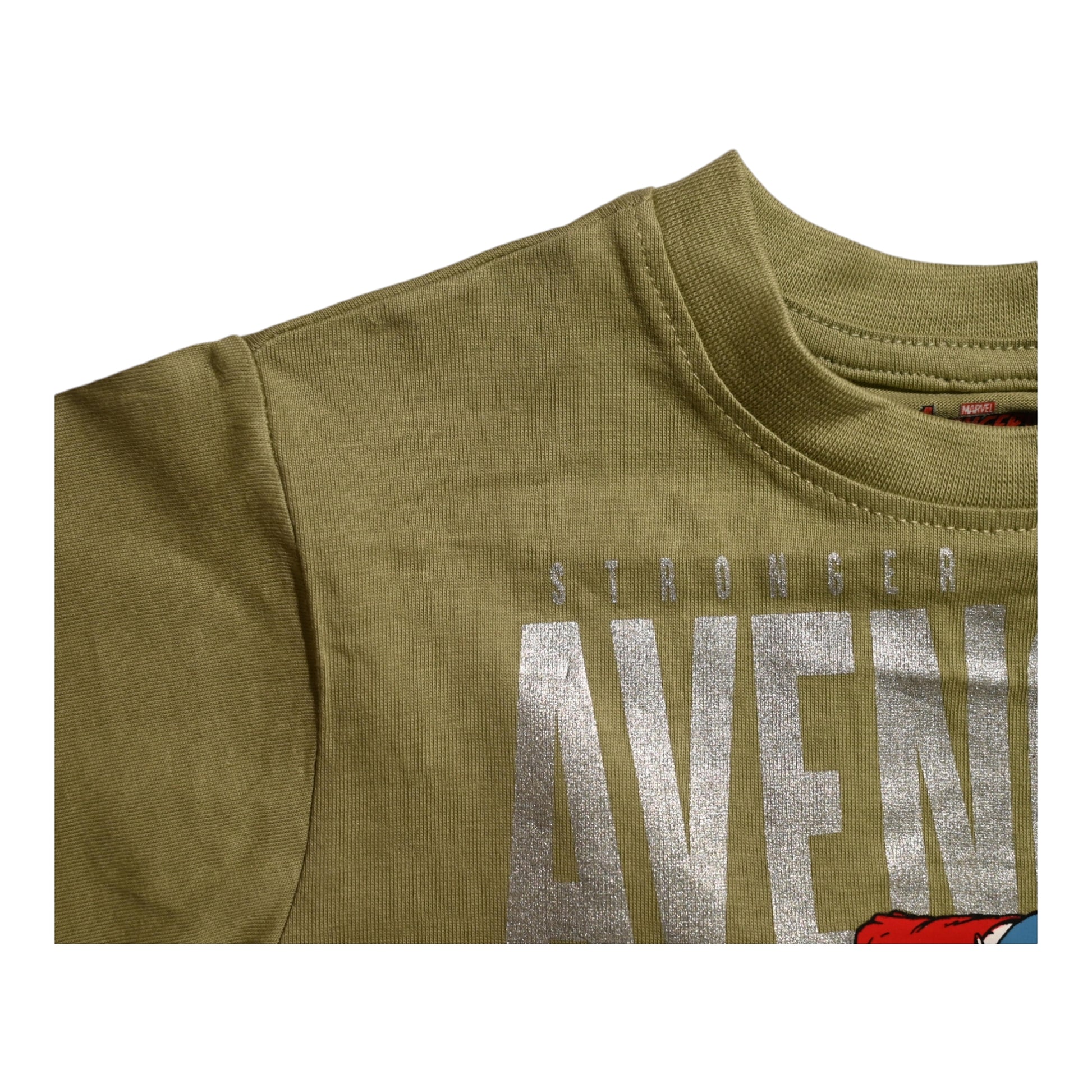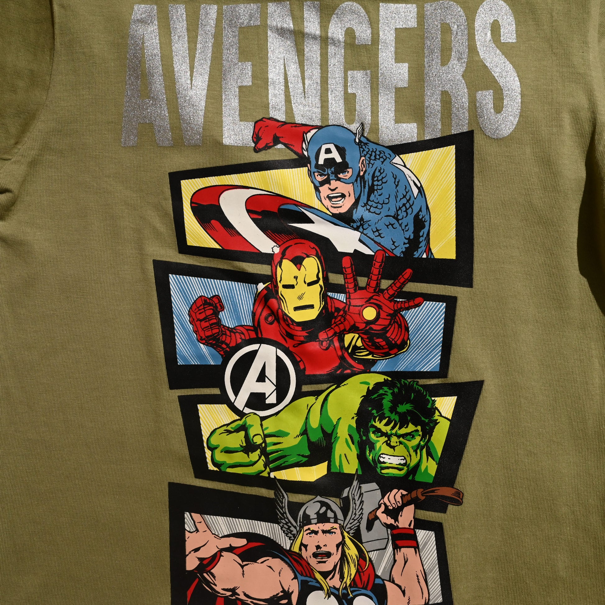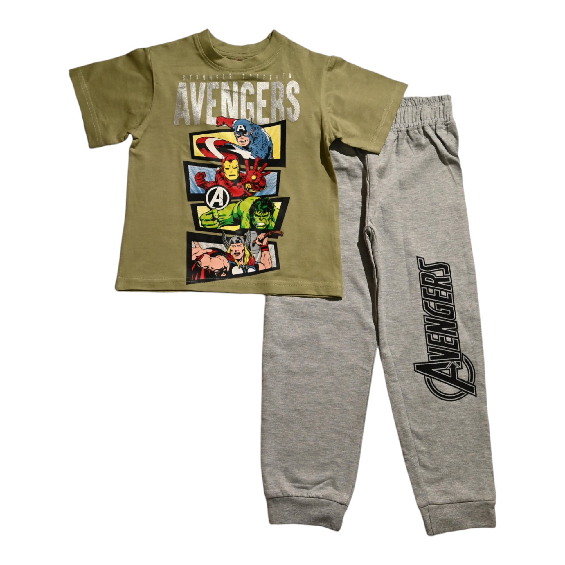 Unleash your inner superhero with this eye-catching Avengers t-shirt and shorts set. The vibrant green t-shirt features iconic images of Captain America, Iron Man, Hulk, and Thor, bringing the legendary Avengers team to life. Made from soft and breathable fabric, it offers superior comfort for everyday adventures. Pair it with the heather grey shorts emblazoned with the iconic Avengers logo for a stylish, action-packed look. This set is perfect for active playtime, lounging around the house, or showing off your love for Earth's mightiest heroes. With its bold graphics and cosy fit, this ensemble is sure to be a favourite among young Avengers fans. Sizing is standard.