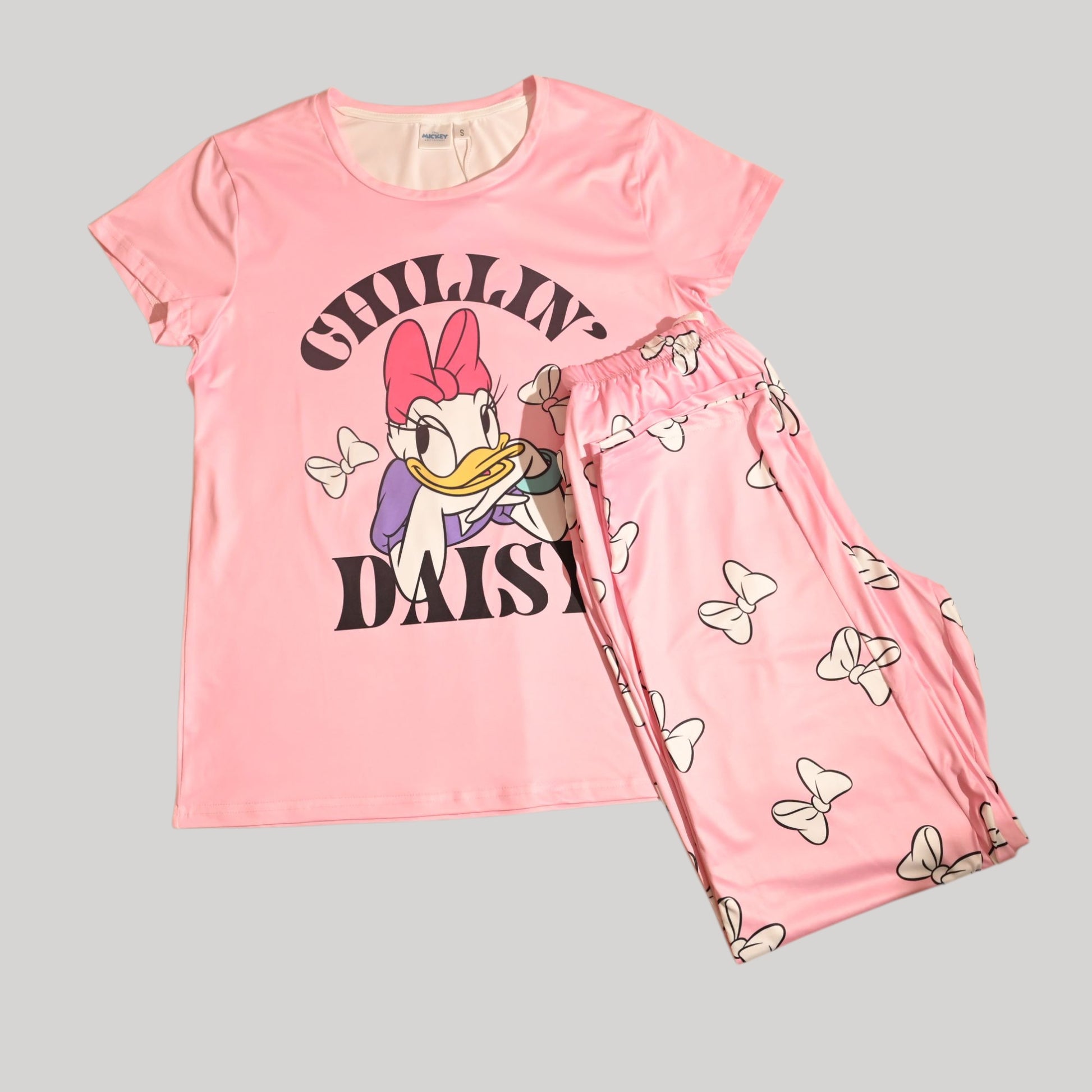 Add a splash of Disney charm to your bedtime routine with the Daisy Duck Women's Short Sleeve Pajama Set! Made from silky-smooth polyester, this lightweight sleepwear keeps you cool and comfortable while featuring the stylish and sassy Daisy Duck in playful designs. The relaxed fit and feminine details make it perfect for lounging or a restful night's sleep.Ideal for Disney fans, sleepovers, or adding a touch of fun to your loungewear collection! πΈπ "Sweet dreams with a dash of Disney magic!"
