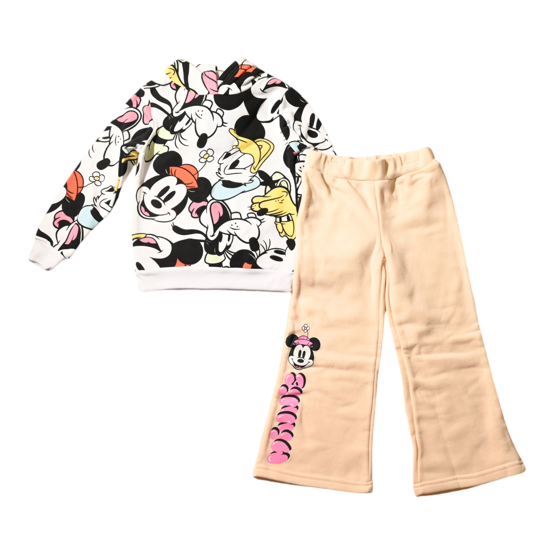 Bring the magic of Mickey Mouse to your child's wardrobe with this adorable two-piece outfit. The sweatshirt features a vibrant all-over print of Mickey and friends in various poses, adding a playful touch to any ensemble. Crafted from high-quality materials, it offers a comfortable and cosy fit. Pair it with the complementary trousers adorned with a charming Mickey Mouse graphic down the side. This ensemble is perfect for playdates, casual outings, or simply lounging at home. With its eye-catching design and soft fabric, your little one will feel fashionable and at ease. Sizes are available to accommodate growing children. Please refer to the size chart to ensure a proper fit. Hand wash or gentle machine wash is recommended to maintain the vibrant colours and quality of the fabric.