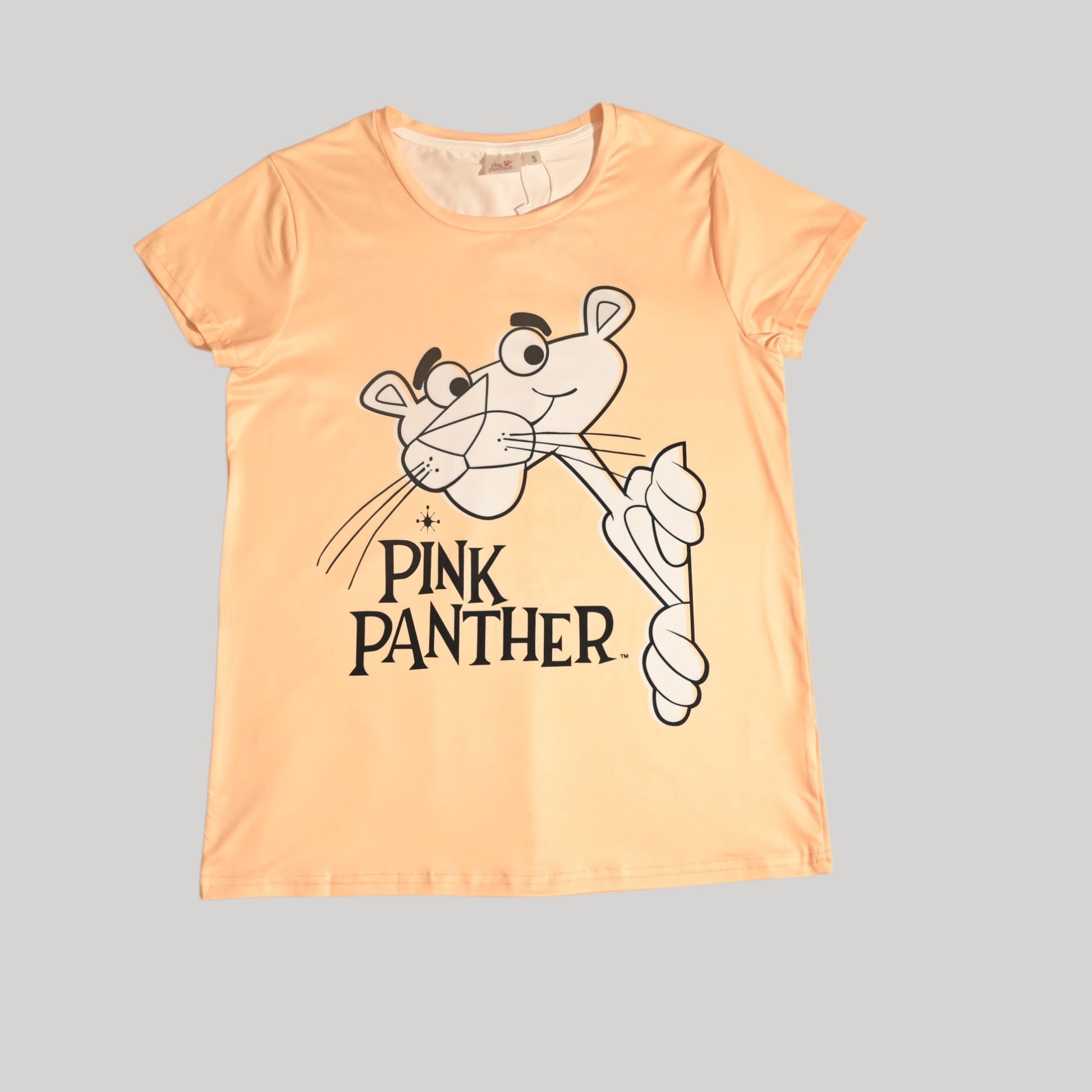 PINK PANTHER WOMENS SHORT SLEEVE PAJAMA SETS , SILKY POLYESTER